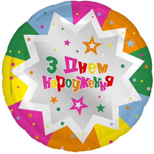 Красивый фольгированный шар для поздравления с Днем Рождения. Имеет клапан, поэтому не требует запаивания. Надпись на украинском языке. Объем шара: 0,0123 м. куб. Размер фигуры: 46 см.